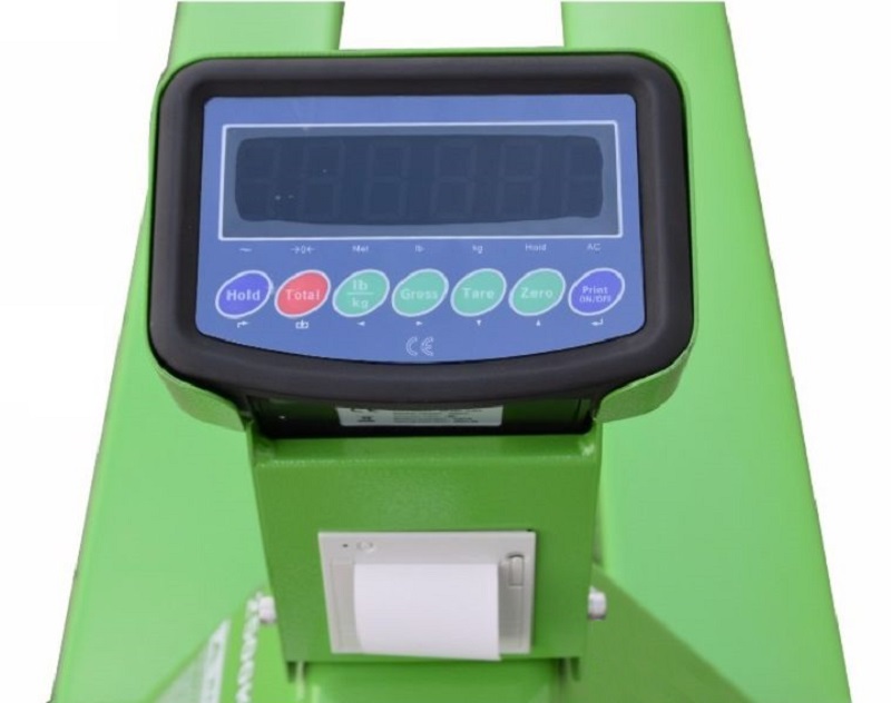 Ζυγιστικό χειροκίνητο παλετοφόρο 2000kg με ηλεκτρονικό ενδείκτη μπαταρίας και θερμικό εκτυπωτή. Φέρει 4 δυναμοκυψέλες (αισθητήρες ζύγισης) για ακρίβεια της ζύγισης.