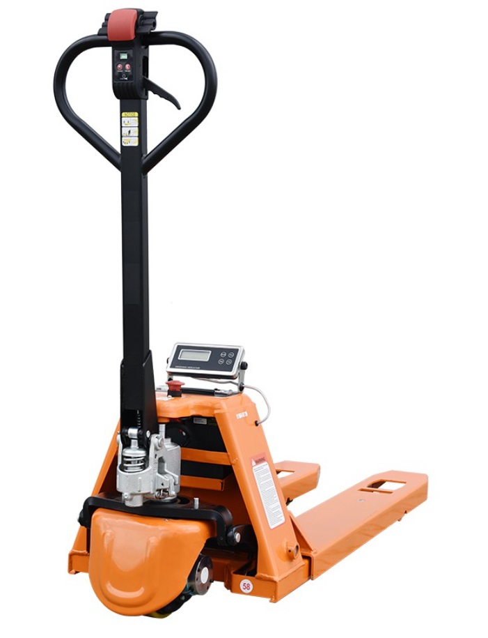 Παλετοφόρο πλήρως ηλεκτρικό σε κίνηση, ανύψωση και κάθοδο με ενσωματωμένο σύστημα ζύγισης 1500 κιλών και θερμικό εκτυπωτή