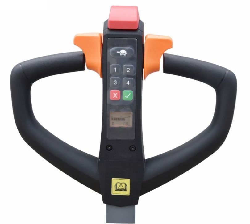 Οθόνη ένδειξης στάθμης μπαταρίας στο χειρστήριο και πληκτρολόγιο με κωδικό τεσσάρων ψηφίων για την λειτουργία του μηχανήματος.